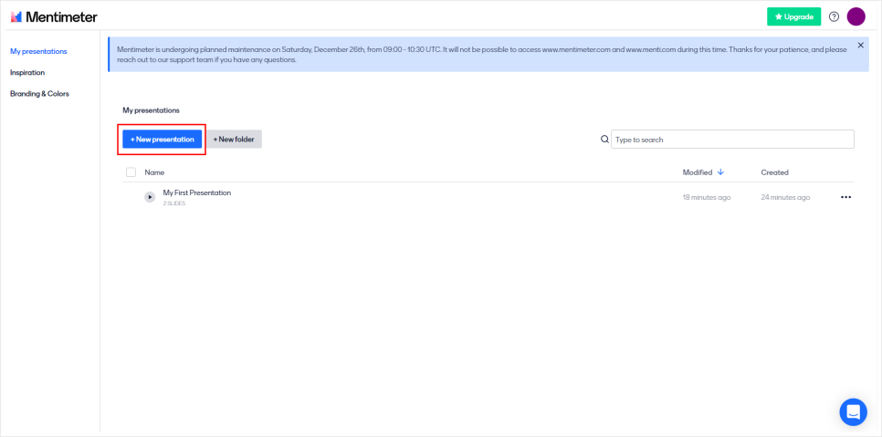 1. [New Presentation] 버튼을 클릭하여 새로운 프레젠테이션(설문)을 만든다.